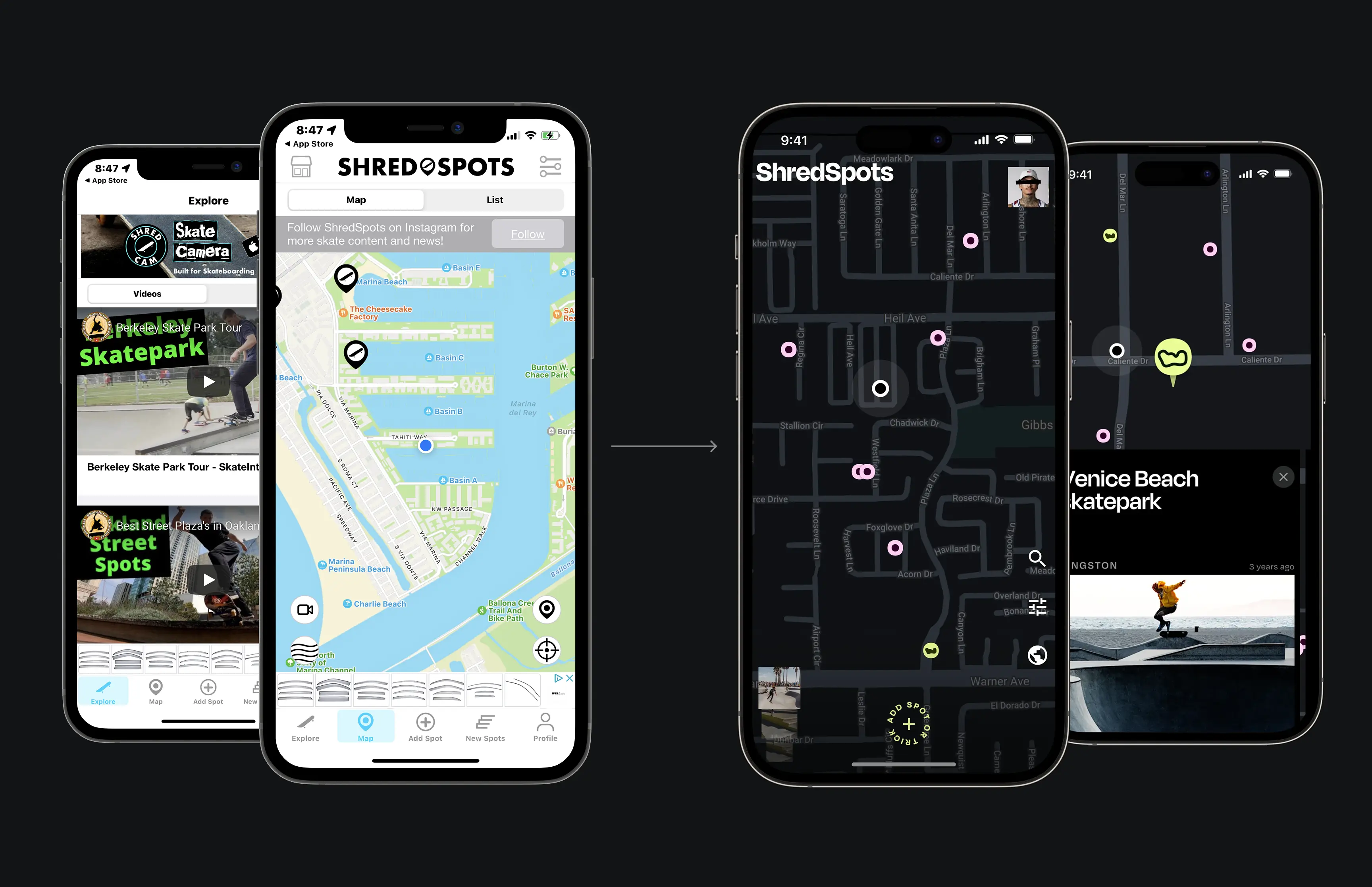 Skaters don’t open an app to scroll — they open it to shred. I reframed the product around its real-world core: the map is the experience. By leading the transition to a map-first architecture, we anchored discovery in location, not UI, making ShredSpots the most intuitive and purpose-built skate map available