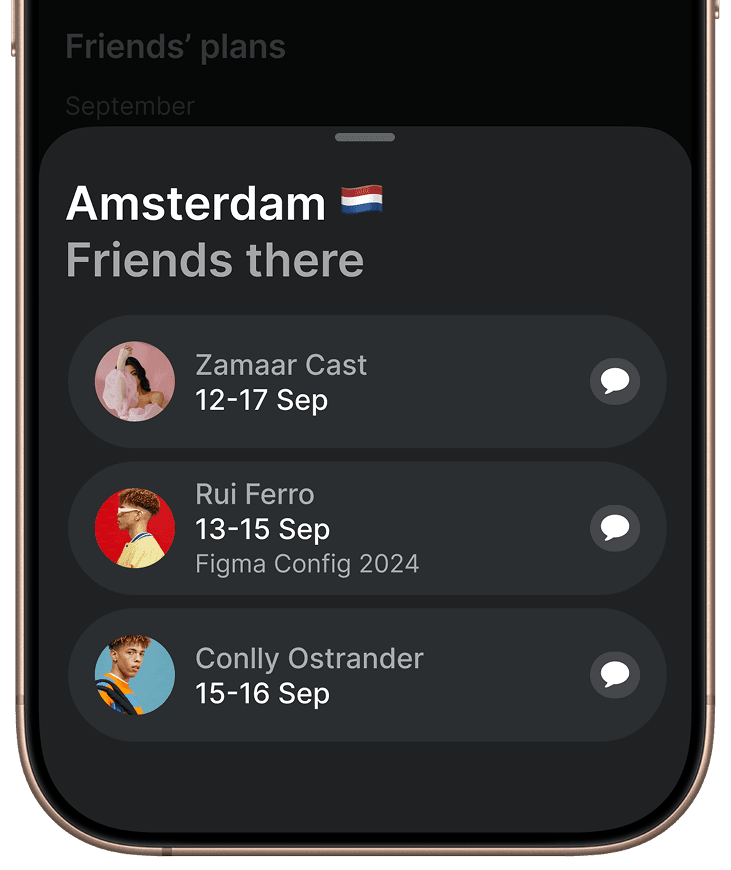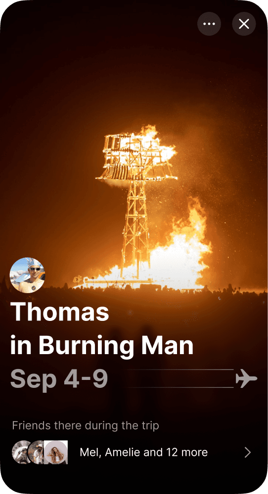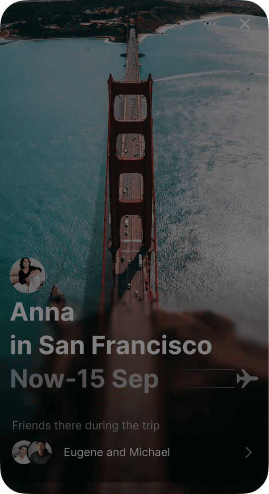 We surface trips found in the user’s calendar and highlight friends connected to that city