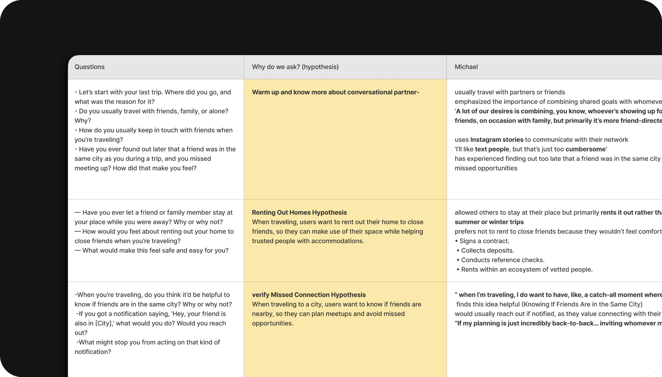 I conducted in-depth interviews with our target audience to uncover real behaviors, pain points, and motivations. These insights helped shape our early product decisions and turned directly into new feature ideas