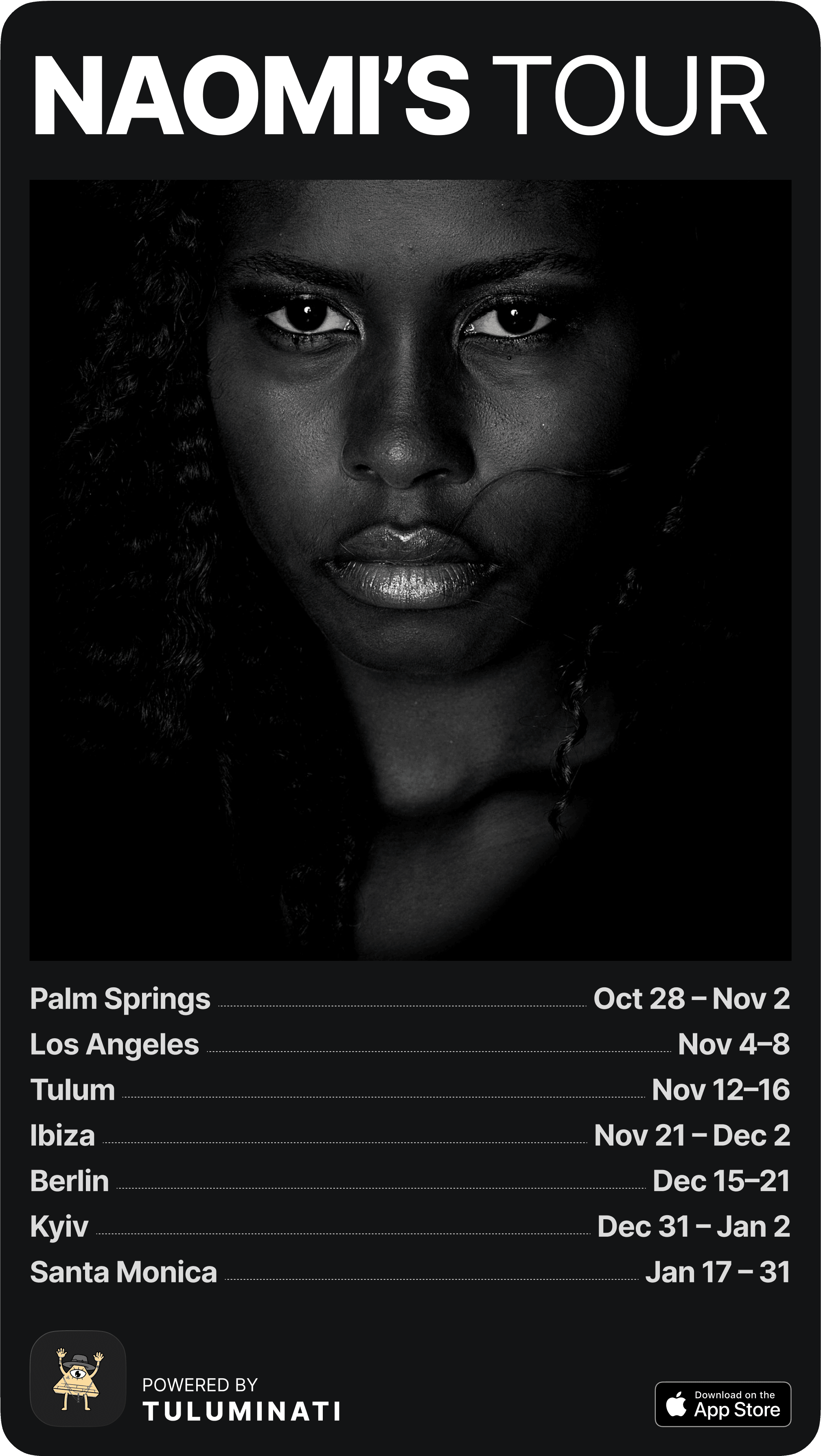 A tour-style poster that turns your trip list into a personal highlight reel